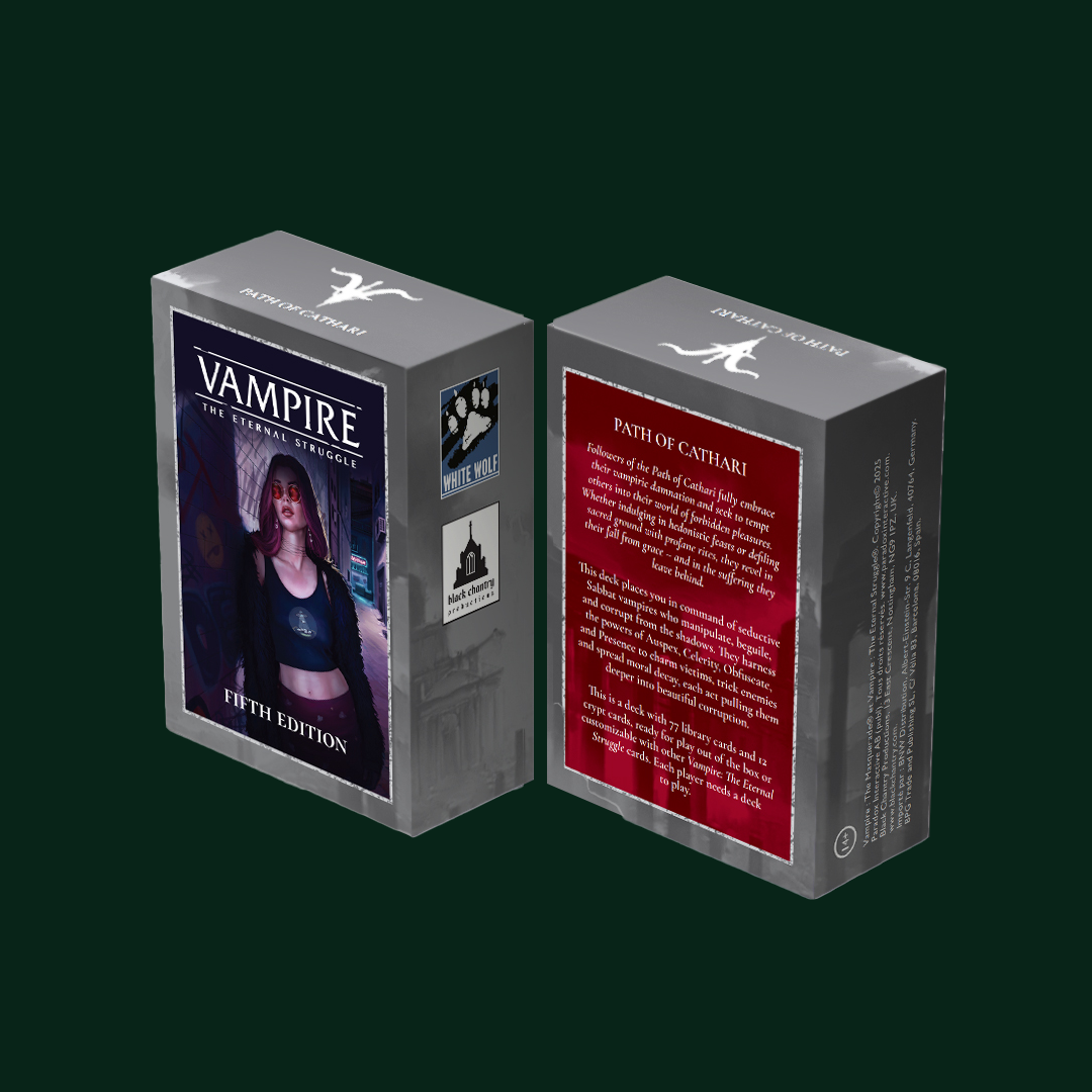 Followers of the Path of Cathari fully embrace their vampiric damnation and seek to tempt others into their world of forbidden pleasures. Whether indulging in hedonistic feasts or defiling sacred ground with profane rites, they revel in their fall from grace – and in the suffering they leave behind.